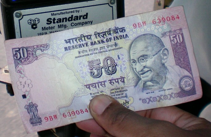 Fifty rupees is equivalent to $1.26 USD. Fifty rupees will purchase a 1-2 mile taxi ride. You KNOW the dollar is weak when the Indian rupee starts gaining on it!