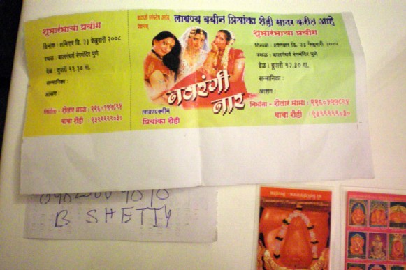 Mr. Shetty kept reassuring me that I would make the 5-hr journey without incident and arrive safely in Bombay. He gave me timings and instructions for disembarking, and for good measure he gave me his mobile number, talisman cards depicting Lord Ganesh for protection and a promotional photograph of his wife.